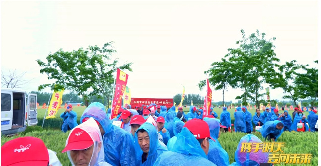 会议当天,虽然刮着大风,下着大雨,也未阻挡住与会嘉宾冒雨观摩“中麦30”和“丰德存麦23”的热情。观摩现场,我国著名的小麦育种家郑天存研究员和中国农科院作物研究所郝元峰博士分别从小麦优异的农艺性状重要作用、黄淮小麦品种需要具备的哪些抗逆优势满足当前农业生产需要做分享,也为经销商在选择要推广的品种提供很好参考和借鉴。同时,现场的经销商代表、种地大户还分享了近几年推广和种植“丰德存麦23”、“中麦30”的心得体会,表达了对品种优秀表现的认可和持续做好市场的信心。