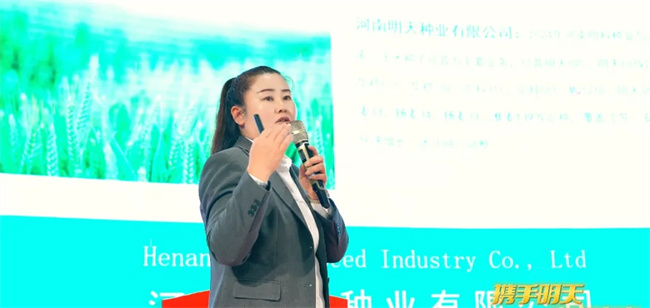 会上,河南明天种业有限公司总经理邱敏分享了“中麦30”和“丰德存麦23”等品种卖点和亮点,介绍了2024年营销规划,宣读了有关销售赋能政策。