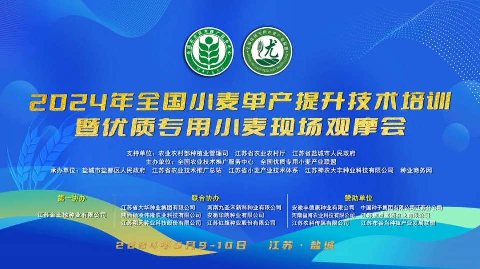 为扎实推进小麦大面积单产提升行动,展示我国小麦高产优质品种和相关产品,促进小麦产业化发展,全国优质专用小麦产业联盟(以下称联盟)定于5月9日—10日在江苏省盐城市召开2024年全国小麦单产提升技术培训暨优质专用小麦现场观摩会。现将有关事项通知如下。