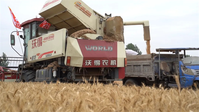 “根据农业农村部全国粮食高产创建文件验收办法的有关规定,专家组实地查看了小麦的田间长势,在听取有关情况介绍的基础上,经过面积丈量,采取联合收割机连片实打实收,收割前进行全面清仓检查,田间落粒不计入产量,称重取样测定水分杂质粒率去除等环节,验收结果如下:整块地长势良好,地块长150米,宽17.675米,面积3.98亩,共收获鲜籽粒3848公斤,经过水分测定仪5点取样,平均含水率21.08%,杂质率1%,按照入库13%的标准含水量,折合亩产868公斤。”专家组现场公布实打测产结果。