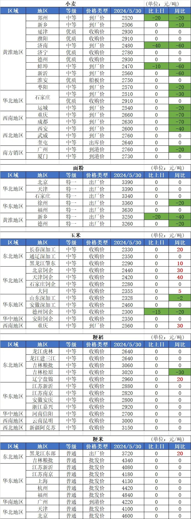 2、5月30日国内玉米价格稳中小跌,其中:南北港口、南方销区玉米价格基本稳定;山东地区、东北地区玉米价格基本稳定,局部价格小幅下跌,跌幅4-16元/吨。