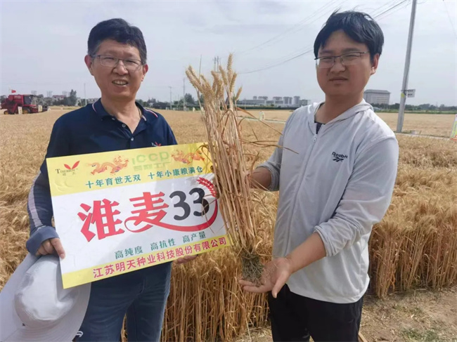 淮麦33作为江苏明天种业多年来主推的优质麦好品种,淮麦33是中国江苏徐淮地区淮阴农业科技研究所选育的中晚熟半冬性品种,因其高产、抗倒性强而备受农民青睐,推广多年来,已经在安徽各县市都得到了大面积种植。淮麦33以其叶色浓绿、茎秆粗壮、根系发达、分蘖能力强等特性,在种植中表现出色。