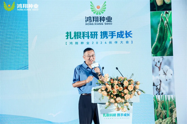 中国种子协会副会长邓光联,在致辞中首先对鸿翔种业在全球种业竞争新格局下的研发创新能力高度认可,对鸿翔种业近年来所取得的优异成绩给予充分肯定。他说,当下,科研创新能力已成为企业核心竞争力关键所在,只有不断加大科研投入,掌握先进的育种技术,培育自主知识产权的优良品种,才能在激烈的市场竞争中立于不败之地。面对新形势、新任务、新挑战,希望鸿翔种业加大研发投入、加强人才队伍建设、深化产业合作、注重知识产权保护和强化市场导向,为我国种业的发展作出更大贡献!