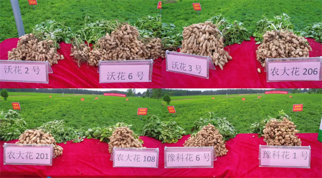 会前,参会嘉宾观摩了河南省花生良种联合攻关项目尉氏县万亩示范方,对优质、高产、抗病、宜机收花生新品种农大花108、农大花206、农大花201、豫科花1号、沃花2号、沃花6号以及其他新品种田间长势、饱果率、抗病等情况,进行详细观察研判,听取了金沃野农业董事长李宪挺对万亩示范方建设情况汇报。
