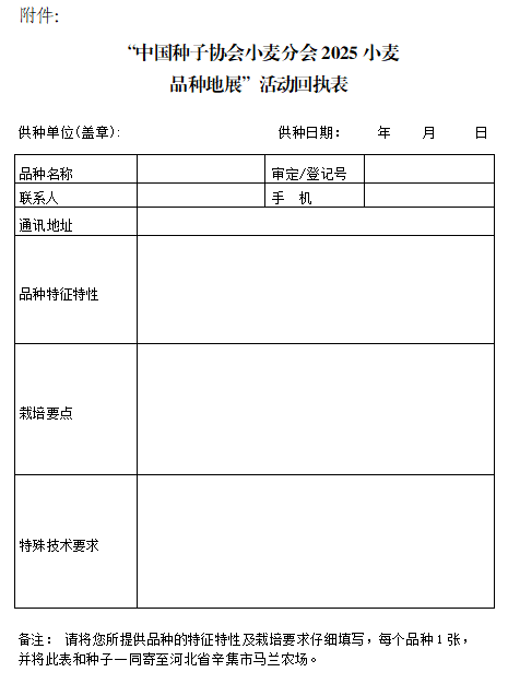 附件:“中国种子协会小麦分会2025小麦品种地展”活动回执表