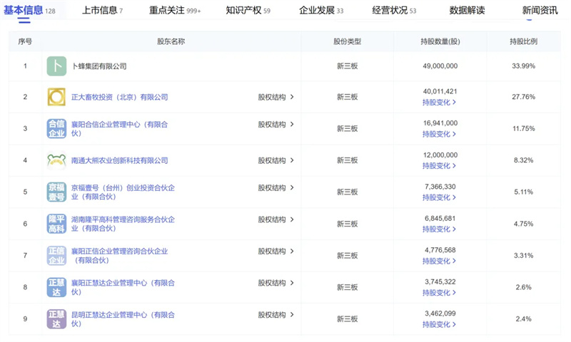 股东方面,卜蜂集团有限公司直接持有正大种业33.99%的股权,并通过全资子公司正大畜牧投资(北京)有限公司间接持有正大种业27.76%的股权,合计持有正大种业61.75%的股权。
