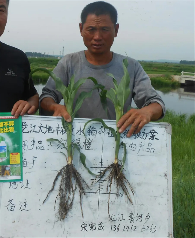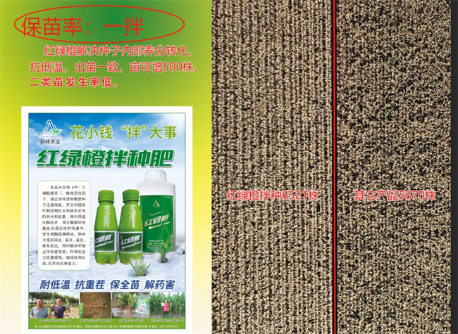 一拌:玉米拌种用红绿橙微囊悬浮液体肥能抗重茬药害,高密种植可增加500株苗。