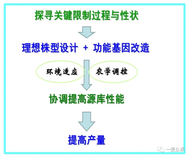 许多关于光合代谢改良的设想是否有实用意义尚难以评判。值得注意的是,非叶器官光合性能的改良和利用可能是未来产量潜力改良、特别是逆境下产量改良的重要突破点!CIMMYT已经把穗光合能力列为新品种选育的突出指标。我们对小麦品种穗光合性能进行了长达10多年研究,对其重要性已有基本认识。小麦和水稻的产量形成似有明显的不同之处,已故的中国农业大学水稻专家廉平湖先生,早在上世纪70年代提出并在浙江、江苏、江西、福建等水稻主产区广泛宣讲水稻高产的“三个90%”理论,即:水稻产量90%以上来自于“空间营养”...光合作用;高产水稻产量90%以上来自于抽穗后的光合作用;高产水稻产量物质90%左右来自于上部4片叶的光合作用。进而提出,水稻高产栽培应控制群体数量,提高群体质量;控制前期营养体,提高抽穗后物质积累;一切高产措施都必须有利于改善抽穗后上部叶片光合性能。这一理论成为后来水稻“稀少平”栽培法和“群体质量”栽培的重要基础。然而,观察小麦的产量形成,似乎表现出两个“80%”特点,即:高产小麦产量80%左右来自于开花后物质积累;高产小麦花后积累的物质80%左右来自于旗叶及旗叶以上器官(穗和穗下节间)的光合作用。特别是穗器官具有明显的光合抗逆优势:直立分布于群体上层,光-气环境好;具有“类C4”光合机制,能把籽粒呼吸释放的CO2重新固定,具有高光效潜力;水势稳定,耐旱耐热,不易早衰;光合产物能就近输入籽粒中;逆境下对产量有较大贡献。穗光合对产量的贡献可达20-45%(因品种和环境而有差异)。我们在河北研发和大面积推广的的小麦节水高产栽培技术,其主要原理之一,就是在稳定叶片功能的基础上充分发挥穗、茎、鞘等非叶器官的光合耐逆机能。依此,通过高密度栽培和减灌调亏,控叶增穗,扩大冠层非叶光合面积,同时增加根层种子根数目,形成一个高光效高水效强抗逆的群体结构,实现节水与高产的统一。节水抗逆品种的筛选也要重视非叶光合器官结构与功能的表现特征。
