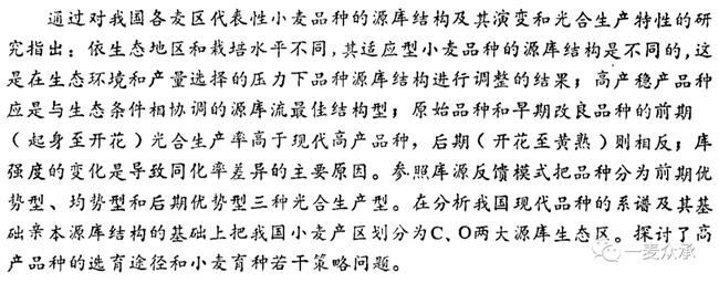 11、系统地读完安徽农学院(安徽农业大学)徐风先生1985年发表于《安徽农学院学报》上的长篇论文:“小麦品种源库生态规律的研究...小麦高产育种若干问题的探讨”,读后,深受启发并深为震憾:这是一篇多么重要的论文啊!凝聚了老先生多年的心血,怎么默默无闻没有引起小麦学界重视呢(可能是发表的刋物少有人查阅的原因)?我把其论文摘要显示如下: