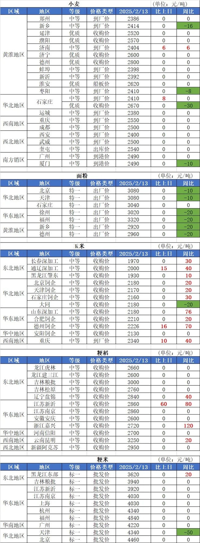 1、2月13日,国内小麦市场平稳偏强运行。其中,发达面粉潍坊涨5厘,含票价1.195元/斤;商河金沙河涨3厘,含票价1.202元/斤;安阳益海嘉里涨5厘,含票价1.2元/斤;石家庄益海嘉里涨5厘,含票价1.19元/斤。