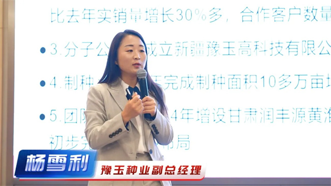 会议现场,豫玉种业副总经理、彭创农业总经理杨雪利在以《豫玉种业发展暨战略规划》为题的报告中,就公司科研实力、市场布局、品种定位、种子质量控制和营销策略等方面进行全面阐述。杨总着重强调,科研始终是豫玉种业发展的重中之重。在种业竞争日益激烈的当下,优良品种就是企业的核心。未来,公司将继续强抓科研,加大在科研领域的投入,吸引更多优秀的科研人才,建立更加完善的科研体系,培育出更多适应市场需求、具有高产、抗逆等优良特性的品种。完善渠道体系和服务体系建设,扩大市场覆盖范围,提升客户满意度和忠诚度,携手合作伙伴创造更大财富,助力农业增产、农民增收。