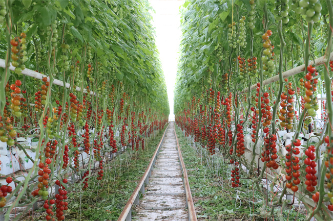 串收番茄之所以如此特别,得益于独特的种植技术和先进的温室设施。连栋玻璃温室里,高度更高,透光性更好,为番茄的生长提供了理想的光照和温度条件。