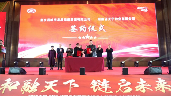 新乡县城市发展投资集团有限公司与河南省天宁种业有限公司签订战略合作协议,成立河南宁谷时代农业科技发展有限公司,标志着天宁58号产业壮大发展进入崭新时代。