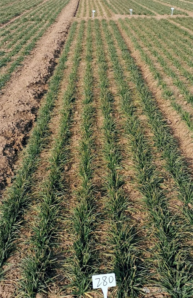 这个材料,就是中麦578和烟农24组合第6代的两个品系、6个小区。其具体表现是:幼苗越冬性好,分蘖多,叶片细,颜色深……有照片为证——