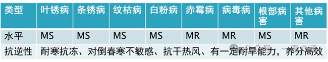 随着秸秆还田的持续和大量化肥、农药的使用,造成土壤结构加速硬化和病原体的大量积累,各种病虫害发生的几率有了较大幅度的提高,同时以黄花叶病毒病、包囊线虫病、根腐病和茎基腐病为代表的新型病害发生几率逐年增加,对小麦产量的提高和降低生产成本造成极大负面影响。所以作为小麦育种工作者在考虑传统病害抗性的同时,有鉴定条件的还需要对新型病害加强关注和鉴定,以防未来品种审定过程中病害鉴定标准的提高或修改。具体病害抗性水平和抗逆性本人认为应该达到下表列举标准以上比较合适。