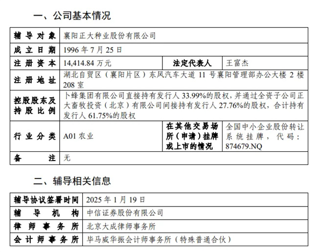 2024年底,襄阳正大种业股份有限公司正式在全国中小企业股份转让系统(新三板)创新层挂牌。