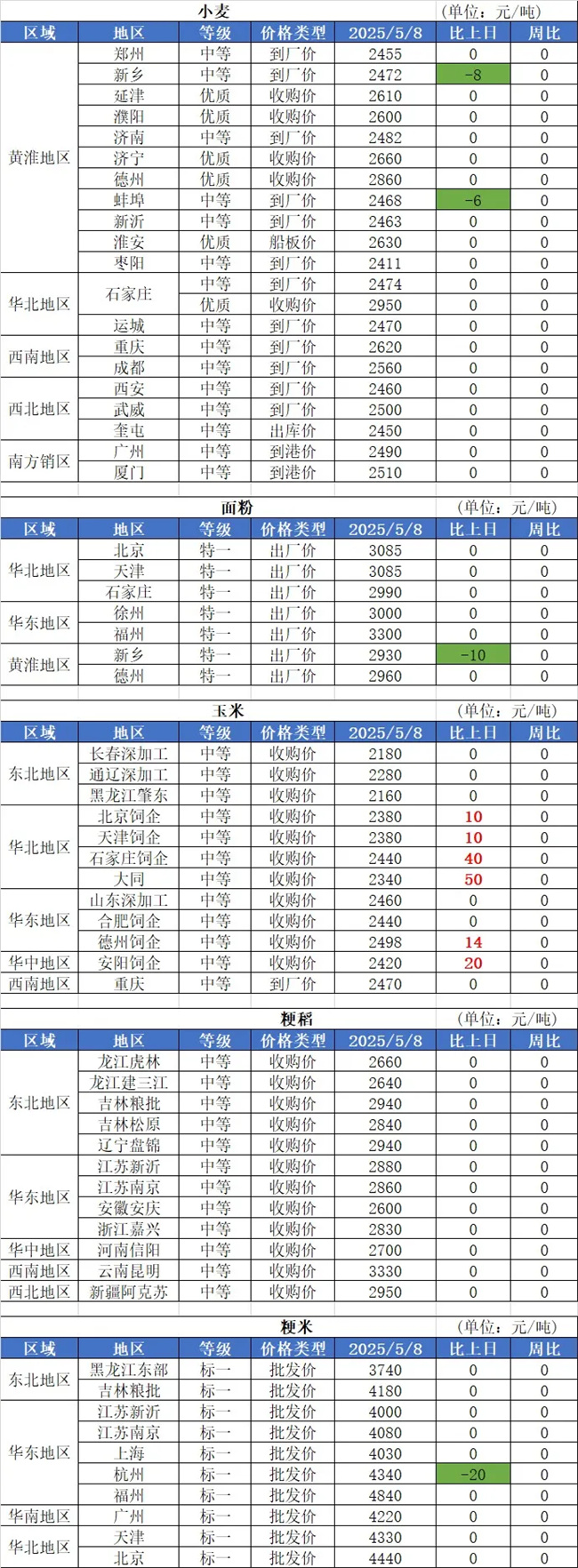 1、目前湖北新麦已经零星上市,今年开秤时间略早于去年,国标二等小麦价格1.2元/斤。据市场各方反馈,湖北新麦除了部分山岗坡地明显减产外,大部分地区浇过水的产量乐观,品质良好。