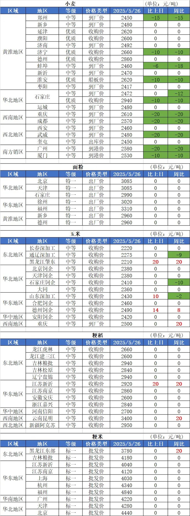 2、5月26日,国内部分玉米深加工企业玉米收购价格调整,其中山东潍坊盛泰药业玉米收购价格调整为2410元/吨,环比上涨10元/吨;黑龙江齐齐哈尔阜丰玉米收购价格调整为2190元/吨,环比上涨30元/吨;临清金玉米玉米收购价格调整为2380元/吨,环比下跌10元/吨。