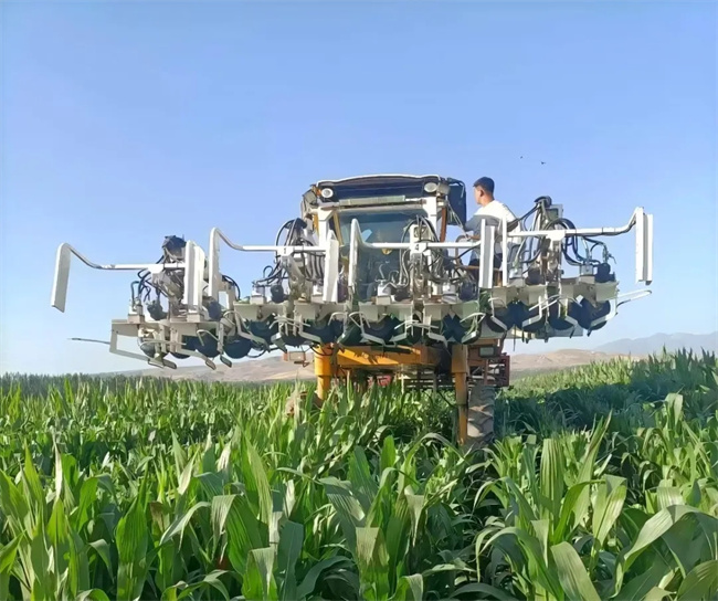 在田间,三台意大利进口的抽雄机械正高效运作。智能机械臂能够根据玉米植株的高度实时调整自身高度精度,确保作业的精准性。润嘉种业质量总监李森介绍:“机械作业能够在最佳时间段完成去雄作业,最大限度地提升抽雄效率,从而确保种子的纯度。”润嘉种业建立了17道质量管控节点,涵盖从亲本筛选到田间去杂的全过程。在抽雄关键期,公司采取机械抽雄与人工巡检相结合的方式,30余名质检员每天徒步20公里,逐垄进行三遍复检,确保去雄彻底率在99.9%以上。