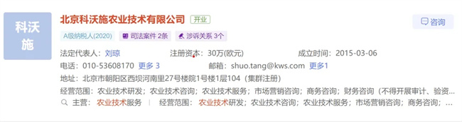 此外,科沃施农业科技研发(海南)有限公司、科沃施种业科技(三亚)有限公司状态均显示为“注销”,北京科沃施农业技术有限公司仍处于“开业”状态。