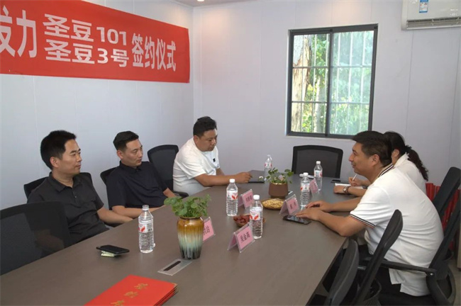 2025年7月3日,山东欣丰种业有限公司与种业商务网在种业商务网新品种展示基地举行了“圣豆101”“圣豆3号”大单品流量增长签约仪式。签约仪式上,欣丰种业总经理宋新萌与种业商务网主任董伟出席并签约,双方将共同发力,推动这两个大豆品种的市场推广。