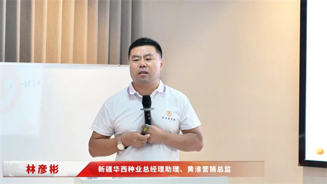 新疆华西种业总经理助理林彦彬以《胖东来农资人该怎么学》为题,分享了天时、地利、人和的学习心得,强调与时代同频共振、不断汲取能量、提升自身格局的重要性。