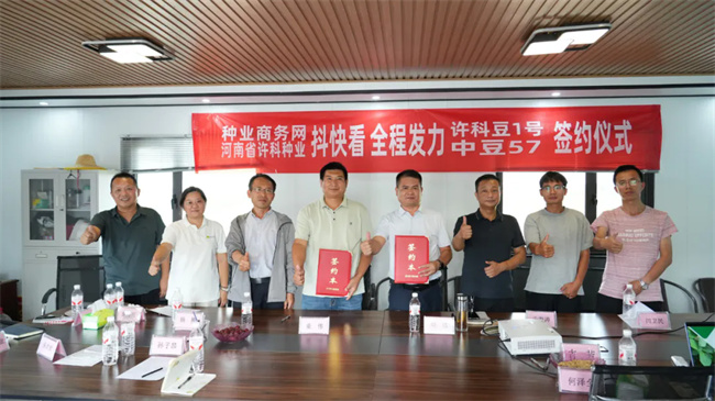 2025年7月14日,种业商务网“抖快看”全程助力许科种业“许科豆1号”“中豆57”大单品流量增长签约仪式在种业商务网直播基地圆满成功。此次签约,开启了双方携手推动优良大豆品种市场推广的新征程,为大豆产业发展注入了新的活力。