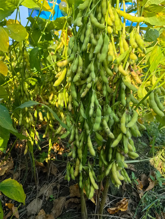 1,产量高:分枝多,结荚多,两年区试比对照中豆41增产7.2%,生产试验比对照增产10.1%,2024年经湖北省农业技术推广总站组织专家测产,创造了1.2万亩连片种植276.1公斤/亩的高产佳绩,成为行业关注焦点,被央视、湖北卫视、湖北日报等主流媒体报道;凭借其高产稳产优势,2023--2025年列为湖北省农业农村厅唯一主导大豆品种,长江流域国审大豆对照品种。以其优良农艺性状,成为农业农村部玉米大豆带状复合种植主推品种;