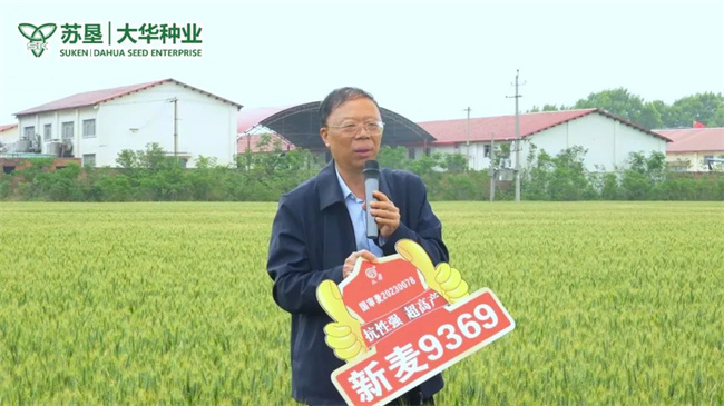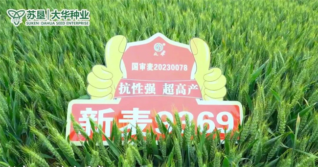 新麦9369连续两年国家区试、生产试验小组第一名。新麦9369由新麦31和洛麦29杂交选育而成,半冬性品种,全生育期219.4天,与对照品种周麦18熟期相当。幼苗半匍匐,叶片细长,叶色深绿,分蘖力较强。株高79.0厘米,株型较紧凑,抗倒性较好,整齐度好,穗纺锤形,短芒,白粒,籽粒半硬质,饱满度较饱满。亩穗数40.3万穗,穗粒数34.0粒,千粒重48.0克。在2019-2020年度国家小麦良种联合攻关黄淮冬麦区南片大区试验中,平均亩产572.9千克,比对照周麦18增产8.94%;2020-2021年度续试,平均亩产536.8千克,比对照周麦18增产11.01%;2021-2022年度生产试验,平均亩产660.9千克,比对照周麦18增产9.96%,产量均达到极显著水平,试验品比实现高产六连冠佳绩。新麦9369以其高产、稳产、抗倒伏等特性,在黄淮冬麦区南片具有广阔的应用前景。
