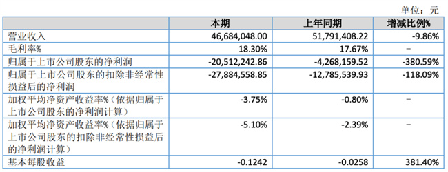 秋乐种业表示,公司本期实现营业收入46,684,048.00元,较去年同期减少9.86%,净利润-20,512,242.86元,较去年同期下降380.59%。本期净利润下滑主要是由于信用减值损失、资产处置收益大幅度减少所致。本期收回长账龄应收账款较同期下降,信用减值损失减少9,400,829.22元。上年同期处置全资子公司甘肃秋乐老加工厂取得的收益,使本期资产处置减少5,948,572.21元。