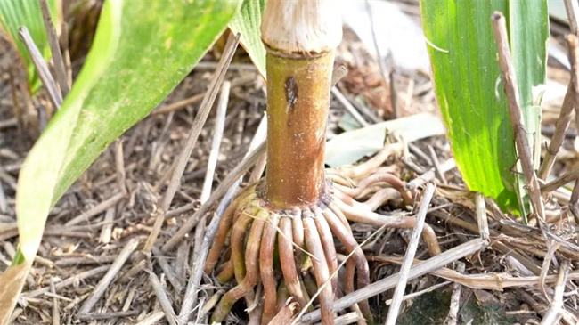 在2025年高温干旱与青枯病集中爆发的不利环境下,该品种依旧表现优异:田间植株通透性好,上部叶片上冲,下部叶片平展,光合效率高;根系发达,茎秆韧性强,抗倒伏能力突出。其果穗呈宽板粮型,轴细粒深,籽粒商品性佳,百粒重高,充分展现了其高产潜力。