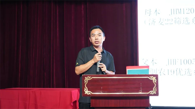 金海种业小麦河北负责人刘世斌经理重点推介了矮秆抗倒、高产稳产的金海711小麦品种,分享了其在各地的表现及下一步在河北的推广规划。
