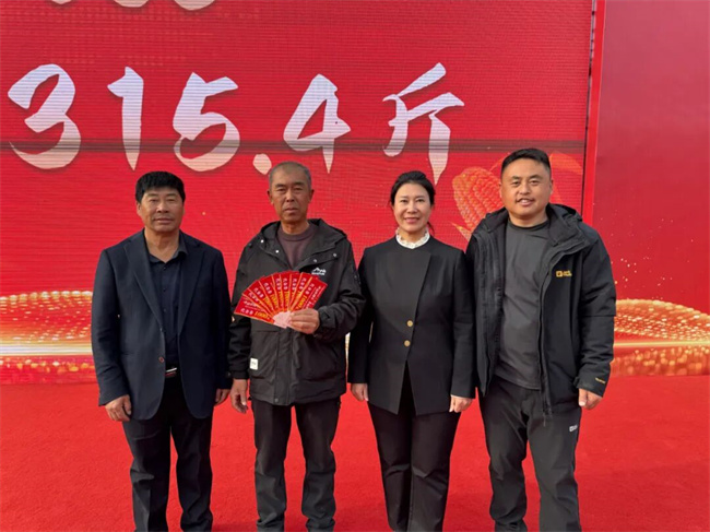 在本次测产中,测产地块并非“单独吃小灶”的试验田,而是普通农户按照常规管理方式种植的普通田块。即便如此,联达F085在田间保苗率仅83%的情况下,仍实现亩产干粮1148公斤的惊人成绩,充分体现了其卓越的抗逆性与强大的产量潜力。现场,公司给予该3000亩成方连片联达F085种植大户10000元的奖励,期望联达F085大面积单产提升再上新高度!