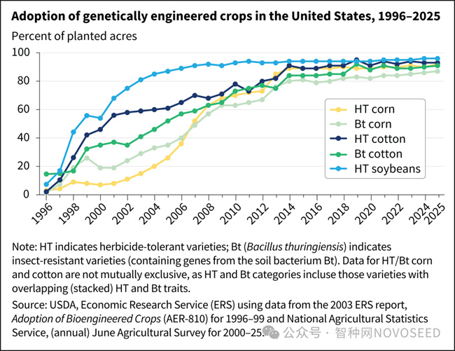 自1996年基因改造作物商业化以来,美国农民对其采纳速度极快。