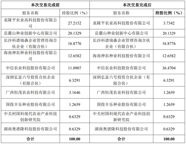 隆平高科表示,对华智生物股权进行优化,有利于充分发挥华智生物的种业关键共性技术平台优势,深度整合中信集团、湖南省内及行业内优势资源,更好支持其长期发展。