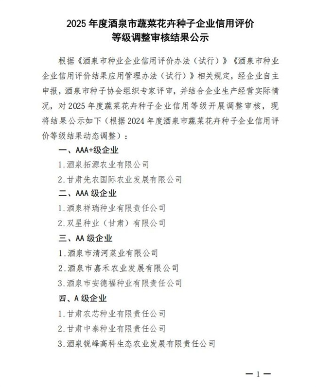协会发布公示,对2025年度蔬菜花卉种子企业信用等级调整审核。