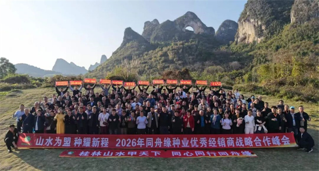 春满桂林,聚力启航。当漓江的碧波映照着丰收的期许,当桂树的繁花承载着种业的初心,3月10日,河南省同舟缘种业以“同舟共生,同欲共赢”为核心理念,特邀全国优秀经销商齐聚广西桂林,隆重举行鸿金棒玉米新品种发布暨优秀经销商战略合作峰会。本次峰会不仅是一次新品的重磅亮相,更是同舟缘种业响应国家农业种子战略、践行“让土地和汗水更有价值,为中国农民的丰收而持续奋斗”使命的关键实践。以峰会为纽带,公司与经销商并肩携手,以优质种源赋能农业发展,以初心坚守筑牢丰收根基,在山水之间绘就了“奔小康的道路上,一个人也不能抛下”的共富画卷,会议全程圆满成功,会议现场签单和会后带动追加共计收款2570万元,为新一年的种业征程奠定了坚实基础。