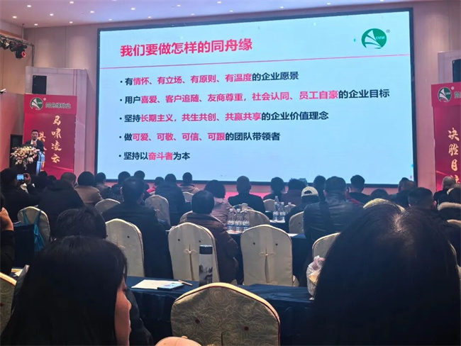 在分享新品种的同时,谢总也深入解读了同舟缘种业的企业文化根基。以“同心同行,共生共创”为核心内核,从“让土地和汗水更有价值”的使命,到“奔小康的道路上,一个人也不能抛下”的共富承诺,从求真务实说到做到的经营哲学,到以人为本,持久愿力的管理理念,谢总用一个个扎根田间的真实案例,讲述公司如何将文化落地为行动。谢总的真诚分享,让现场经销商对公司的发展充满信心,也对鸿金棒的市场前景充满期待。