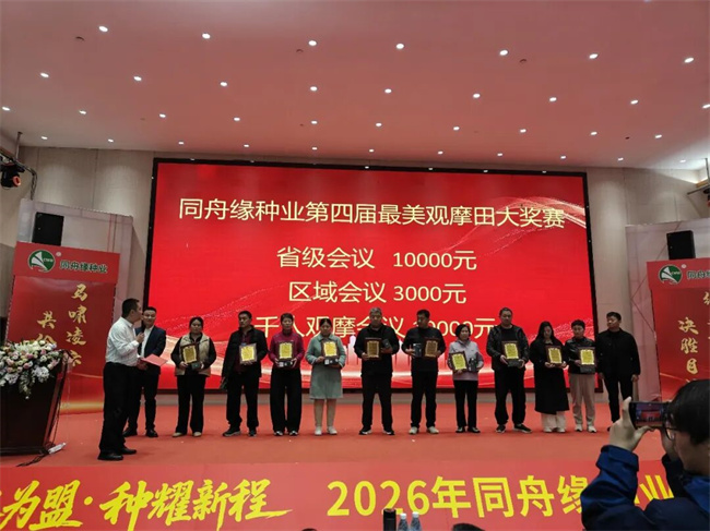 为表彰优秀经销商在过去一年中为市场推广、品种普及做出的突出贡献,峰会现场隆重举行“同舟共赢奖”颁奖仪式。一张张荣誉证书,是对经销商辛勤付出的肯定;一座座奖杯,承载着同舟缘与伙伴并肩前行的情谊。获奖经销商纷纷表示:“选择同舟缘,不仅是因为优质的品种,更是因为靠谱的团队、暖心的服务。跟着同舟缘,我们心里踏实,实现互利共赢。”这份荣誉,是伙伴之间的相互成就,更是同舟缘“同欲共赢”理念的生动实践。