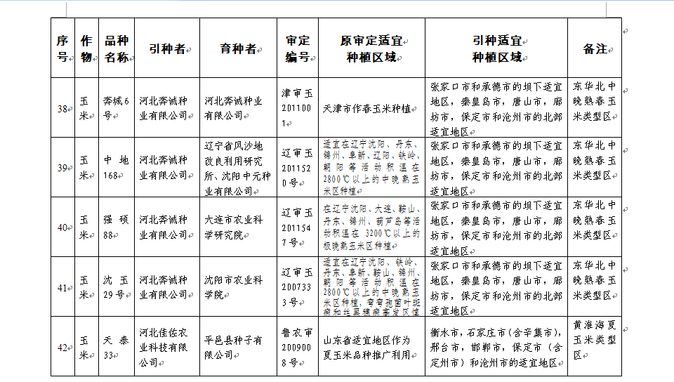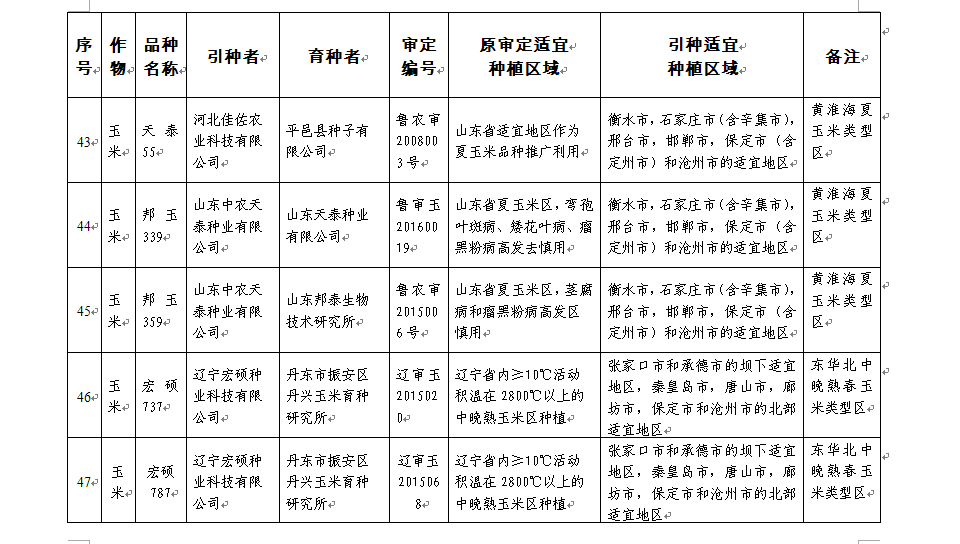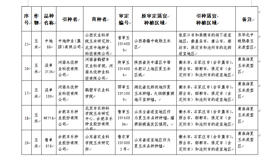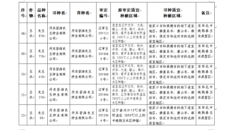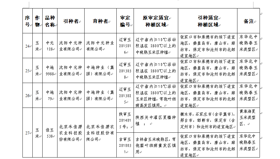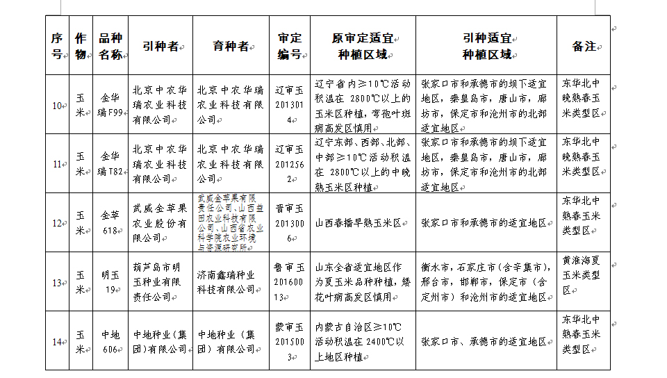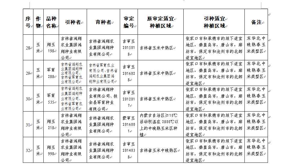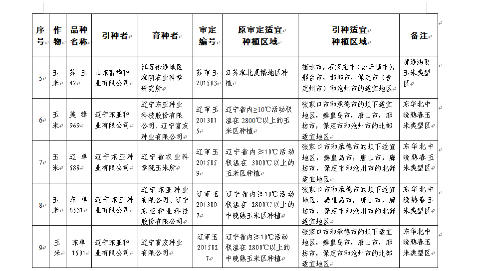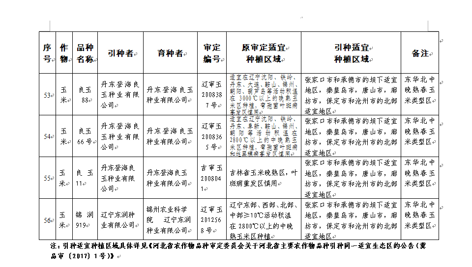 附件:河北省2017年同一适宜生态区引种备案品种目录(第一批)