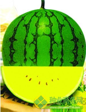 小型黄肉西瓜,极早熟,座果力强,丰产,果实圆球形,果皮绿色并带有数条青色条带,单果重