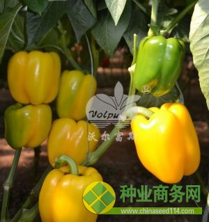 进口杂交一代黄色甜椒品种,植株生长势强健,节间短,座果率高。果实方形,成熟时由绿转黄,单果重
