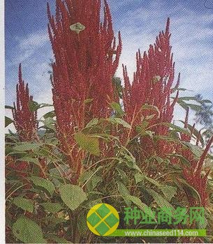 籽粒苋为苋科苋属一年生草本植物。株高2—3米。直根系,侧根多。茎直立粗壮、光滑,呈淡绿色或紫红色,多分枝。叶互生,宽大而繁茂,卵园形或披针形,网状脉,叶多绿色,也有紫色。穗状圆锥花序,长40—70厘米,其色有黄绿或紫色。种子球形,紫黑、棕黄、淡黄等色,千粒重0.5—1.0克。籽粒苋喜温暖湿润气候条件,种子最低发芽温度为5℃,10—12℃发芽最快,植株生长最适温度为20—30℃。不耐寒,但耐热。抗旱能力较强,不耐涝。对土壤要求不严,但在疏松的壤土或沙壤地中生长较为有利。
