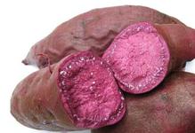叶色绿、茎紫,分枝5-6条,长1.5米左右,生长势强。薯块长纺锤形,整齐美观,表皮光滑鲜艳,商品率高达90%以上。结薯早而集中,鲜薯产量高,春薯一般亩产4000-5000公斤,夏薯3000公斤左右,比徐薯增产30%以上,比美国黑薯、日本川山紫增产1倍以上,是当前黑薯系列中产量最高的品种,薯皮紫红,(似美国黑薯),肉紫黑色,烘干率33%,淀粉含量20-21%,肉质细腻,食味香甜糯,富含物质硒、碘元素,是极好的鲜食保健品种。紫玉薯属早熟品种,早春盖膜栽培,7月底至8月中旬即可收刨上市。 该品种高抗根腐病。中抗茎线虫病,耐旱耐瘠耐大肥,适宜各种气候及土壤条件种植。栽培密度:一般肥水条件春薯亩栽3000株。