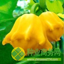 一年生爬蔓植物,鲜果奶凸出的小角,形似白色成熟时果色有白、橙、绿等色。果实形状特别,尾部有5-10个凸出的小角,形似憎帽,观赏期长,小巧可爱,是一种不可食用的观赏型南瓜品种,此种为混合装。