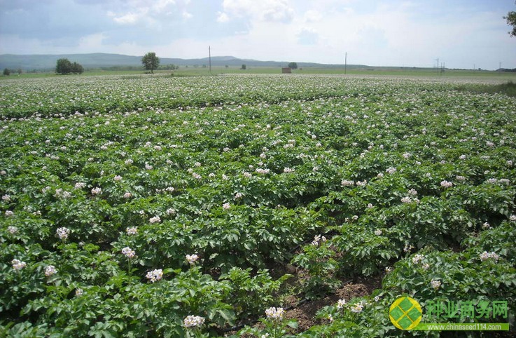 三、播种盖膜。春分到清明为最佳期,在此应该特别提出的是:脱毒土豆可提前早播,春分前播完,株距可控制在20厘米。播种前先用辛硫酸1:10000倍水顺沟喷洒,防止地下害虫。有机肥可直接撒如沟内或整地时撒入;化学肥可划入沟内或撒在种块之间(注意不能与种块直接接触)。播种时,种块置入沟内的方法有两种:一是种芽朝下,此法长出的土豆根长苗壮,土豆少但块大,但苗晚2~3天;另外方法是种芽朝上,此法长出的土豆根相对较短,土豆个小但多,且苗早2~3天。下种结束后从大行内两边取土将土豆沟及小行的空间盖好耧平,加微膜盖严压实。