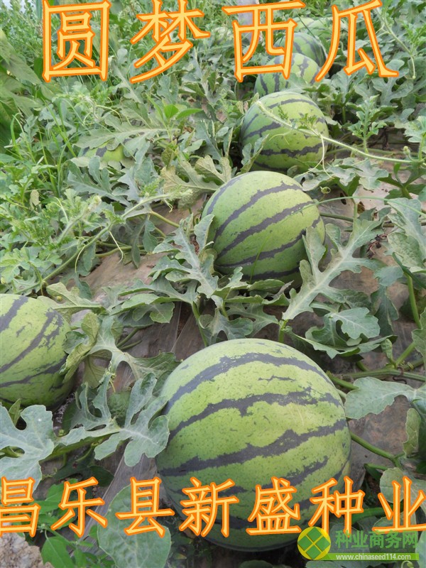 特征特性 :早熟西瓜杂种一代。植株生长势较强,第一雌花平均节位8.7节,果实发育期28-30天。单瓜质量12公斤,果实高圆形,果型指数1.05,果皮绿色覆细齿条,有蜡粉,皮厚1.0厘米,果皮较脆。果肉深红色,中心折光糖含量12.9%,边糖含量9.6%。果实商品率98.5%,枯萎病苗期室内接种鉴定结果为高感。