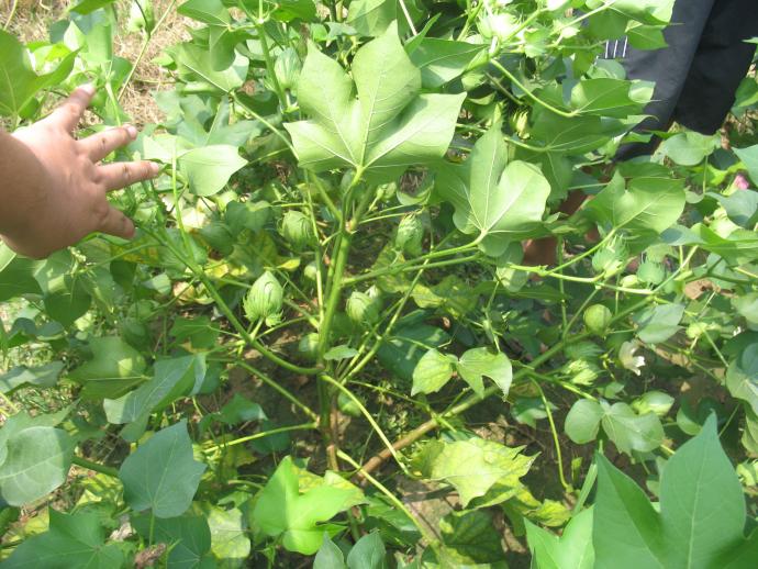 三、及时修棉:受气温的限制,一般立秋后现的蕾、白露后开的花、都是无效的。为了节约养分,促进早熟,应及时去掉无效蕾花、徒长枝、赘芽和空枝,去掉了棉株上新生的幼嫩部分,不仅节约了养分,还能减轻四代棉铃虫的为害。郁闭严重的棉田,由于通风透光不良,可在3~5片棉叶保一个棉铃的前提下,打掉部分多余的老叶。