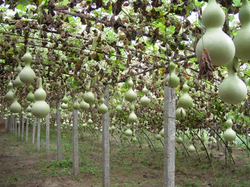 (5)小丑。长势一般,叶片中等,每株结果8-10个。果实皇冠或佛手果形,皮色有白色、黄色等,横径8-10厘米,长12-15厘米,单果重150克