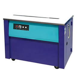 产品概述:高台型半自动打包机适用于各种大小货物的打包,如书刊杂志,纸箱,邮政包裹、地板砖、汽车配件等物品的的捆扎打包。